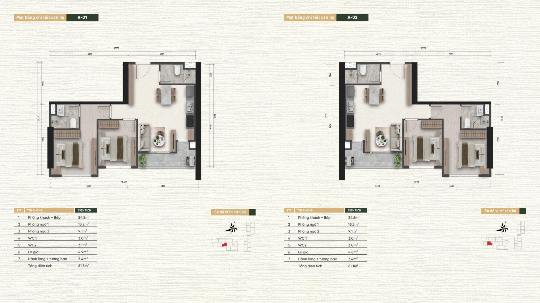 | 2 PN | Từ 59,8 – 70,3 m² | 627 | 63,2% |