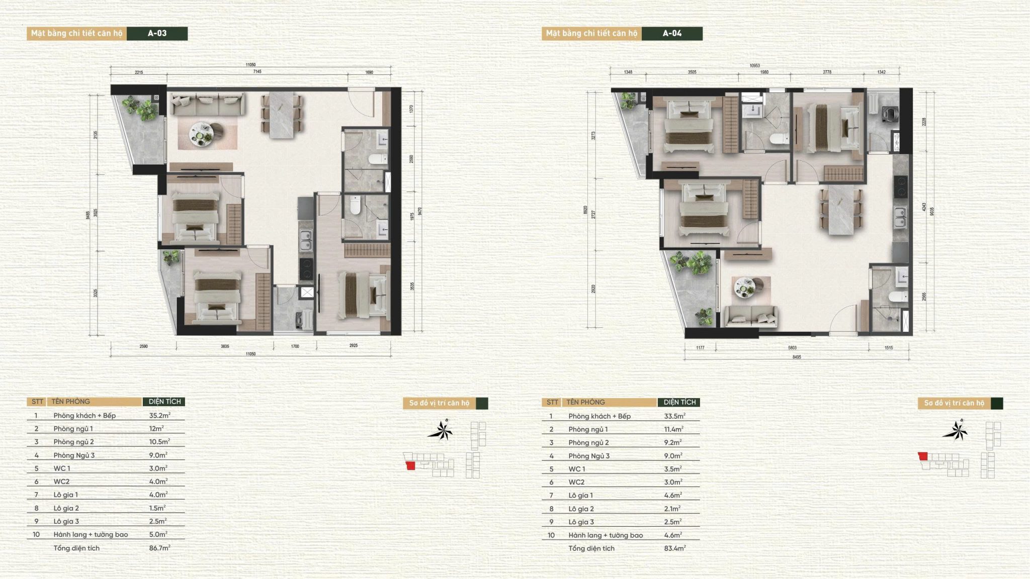 | 3 PN | Từ 81,7 – 97,7 m² | 102 | 10,3% |