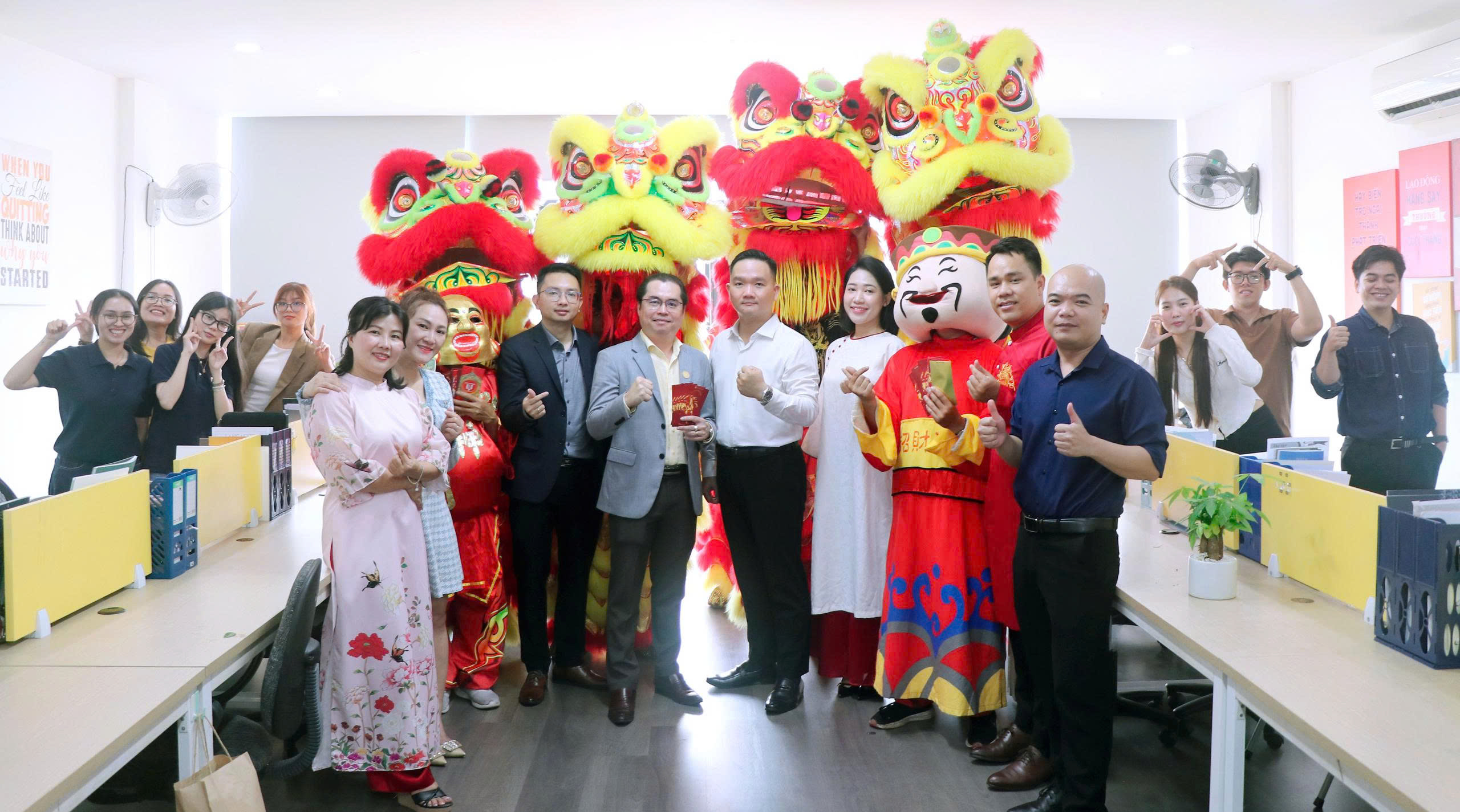 Ngay từ sáng sớm, trụ sở của The One Land đã tràn ngập sắc đỏ và vàng – biểu tượng của sự may mắn và thịnh vượng. Đội ngũ lãnh đạo cùng toàn thể nhân viên đã có mặt đông đủ, rạng rỡ trong những bộ trang phục chỉnh tề, cùng nhau trao đi những phong bao lì xì may mắn và những lời chúc tốt đẹp nhất.